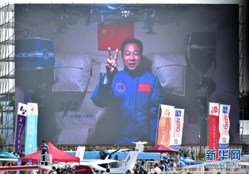 11月1日,航天员景海鹏在天宫二号祝贺航展开幕。当日,在第十一届中国国际航空航天博览会开幕式上,正在天宫二号执行任务的航天员景海鹏、陈冬通过视频给中国航展20岁生日发来祝贺。