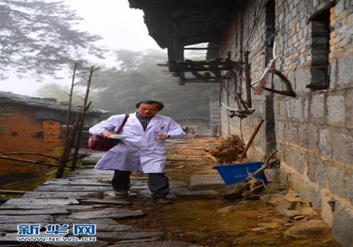 11月1日,李勤如在出诊的路上。今年53岁的李勤如是江西新干县七琴镇燥石村的一名乡村医生,从1979年学医回村后,一直扎根山区,服务村民。燥石村距离新干县城40余公里,坐落于海拔600多米的山上,是新干县地理位置最高的山村,如今村里还剩下约200位60岁以上的村民。因年岁较大,多数村民不愿下山,李勤如便成为他们身边唯一的乡村医生。 30多年来,不管是白天还是黑夜,只要病人家属一声招呼,李勤如都会背着沉甸甸的药箱以最快的速度赶到病人家中。他已记不清多少次从梦中被唤醒、在山林中跌倒多少回、节假日出诊多少次……