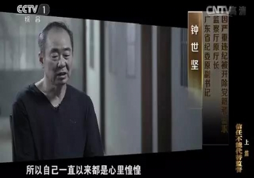 被陈重光案牵扯出的另一名纪委干部是2012年到2015年担任广东省纪委副书记的钟世坚。“自从我收了人家送我第一笔钱开始,相当于埋了一个定时炸弹在自己的身边,这个定时炸弹什么时候爆炸都有可能的。所以自己一直以来都是心里惶惶,很担心。”
