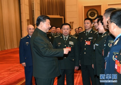 新华社北京3月12日电(记者 李宣良、王经国、王玉山)中共中央总书记、国家主席、中央军委主席习近平12日下午在出席十二届全国人大五次会议解放军代表团全体会议时强调,立足经济社会发展和科技进步的深厚土壤,顺势而为、乘势而上,深入实施军民融合发展战略,开展军民协同创新,推动军民科技基础要素融合,加快建立军民融合创新体系,下更大气力推动科技兴军,坚持向科技创新要战斗力,为我军建设提供强大科技支撑。