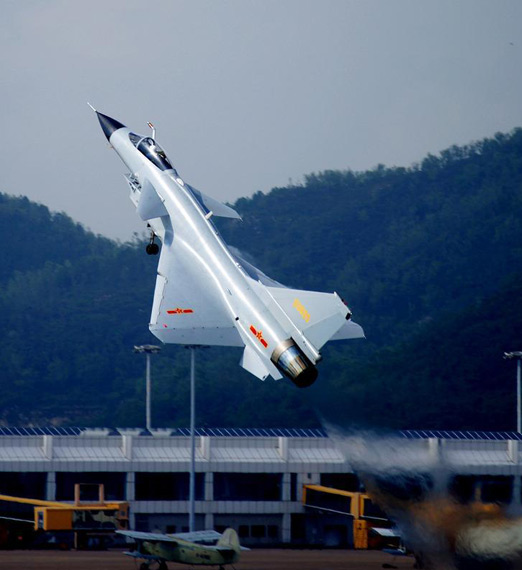 资料图:珠海航展上中国空军歼十战机大角度起飞