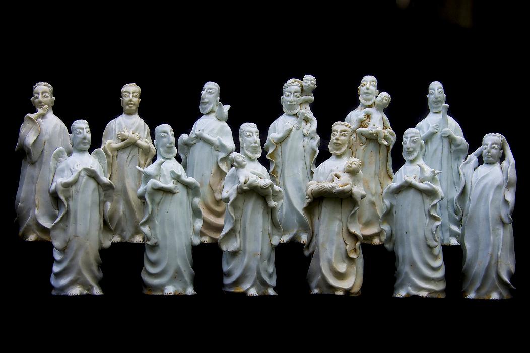 这套“欧罗巴”人瓷像一组共12个(图1),高度在35㎝~40㎝、宽度在18㎝~20㎝之间。如果被证实它们确实属于元代产品的话,那么它将证明欧洲传教士再次进入我国准确的历史时间,还将展现西教在我国活动的一段历史背景,极有可能用实物填补元早期这段时间西教在中国的存在和传播的历史空白,同时也可能证明着更多更多……