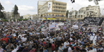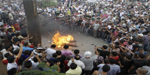 资料图:叙利亚示威者焚烧总统阿萨德的雕像。
