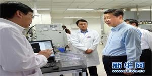 习近平来到位于滨海新区的天津国际生物医药联合研究院,观看了该院自主研发产品展示,察看了分析测试中心、药物筛选中心等,详细了解国家创新药重大专项课题研发情况。看到这里集聚了一批高水平的海外归国创业人员,习近平充分肯定他们为祖国科技事业和人民健康所作出的努力。他指出,科技创新是提高社会生产力和综合国力的战略支撑,必须摆在发展全局的核心位置。我们要充分发挥科技资源丰富、科技人才众多的优势,建设科技创新高地,不断提高原始创新、集成创新和引进消化吸收再创新能力,促进科技和经济深度融合。