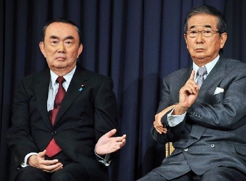 平沼赳夫(左)与石原慎太郎(右)