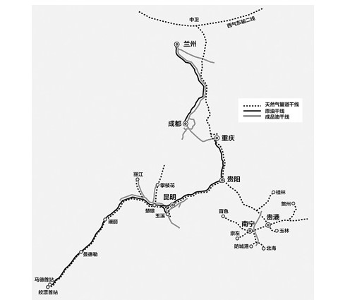 中缅天然气管道干线建成投产后,国内段将通过西二线广南支干线向广东地区输送天然气,并从贵阳向中贵线分输。