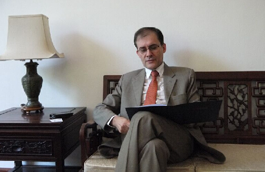 希腊驻华经济商务公使善德思•恩马努尔接受记者采访