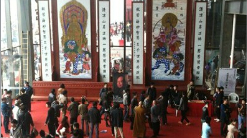 《文殊菩萨》的作者张伟觉圣(号僧璨、常新)并非首次携作参加瓷博会,恰恰相反,作为国家一级美术师、中国美术家协会会员、五台山佛教艺术研究院院长,张伟觉圣从前年至今连续参加了三届瓷博会,且每次都出手不凡:2011年,他在瓷博会现场展示了自己创作的三十六幅罗汉图瓷板画,每件画作皆高2米、宽1米;2012年的瓷博会,他再次以18只规格为500件(件,景德镇地区特有的陶瓷大小计量单位)的“十八罗汉”青花瓷瓶HOLD住全场……