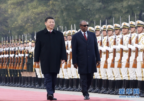 11月2日,国家主席习近平在北京人民大会堂同几内亚总统孔戴举行会谈。这是会谈前,习近平在人民大会堂东门外广场为孔戴举行欢迎仪式。