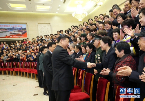 12日上午,京西宾馆会议楼前厅人头攒动、气氛热烈。身着各色服饰的第一届全国文明家庭代表精神饱满,脸上洋溢着喜悦的笑容。9时30分,习近平等来到这里,现场响起长时间的热烈掌声。习近平等同代表们亲切握手,不时互动交流,向他们问好。代表们纷纷向总书记问好,代表各自家庭向总书记表达衷心祝福。习近平同代表们合影留念。