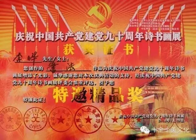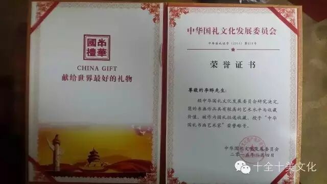颁发中华国礼书画艺术家证书