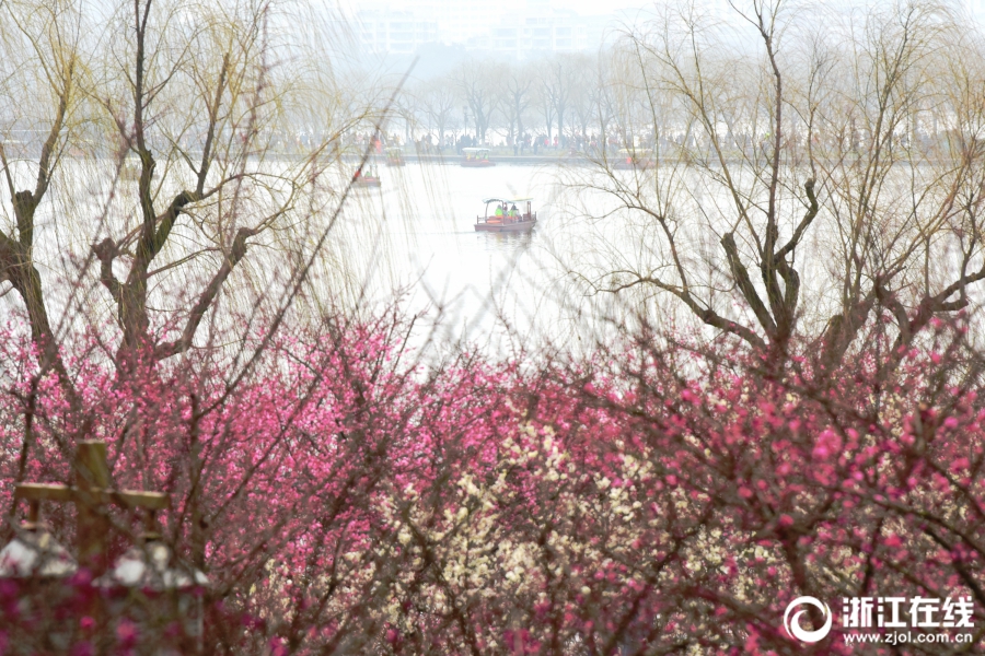 2月25日,杭城虽晴雨相间,但随着气温回暖,西湖景区的梅花竞相绽放,成为一道迷人的风景 孤山红梅醉游人。