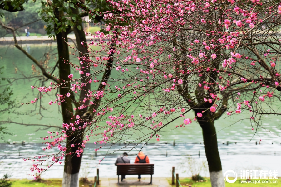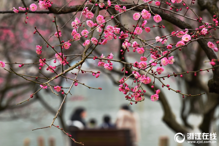 2月25日,杭城虽晴雨相间,但随着气温回暖,西湖景区的梅花竞相绽放,成为一道迷人的风景
