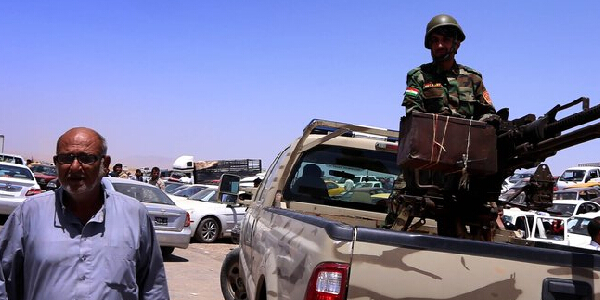据报道,当地时间2014年6月10日,伊拉克埃尔比勒以西40千米的库尔德检查站处,大量伊拉克尼尼微民众为远离暴力逃离家园。伊拉克尼尼微省官员10日证实,该省首府、伊第二大城市摩苏尔当天被反政府武装完全占领,伊安全部队已撤出该市。