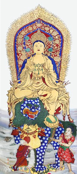 《文殊菩萨》的作者张伟觉圣(号僧璨、常新)并非首次携作参加瓷博会,恰恰相反,作为国家一级美术师、中国美术家协会会员、五台山佛教艺术研究院院长,张伟觉圣从前年至今连续参加了三届瓷博会,且每次都出手不凡:2011年,他在瓷博会现场展示了自己创作的三十六幅罗汉图瓷板画,每件画作皆高2米、宽1米;2012年的瓷博会,他再次以18只规格为500件(件,景德镇地区特有的陶瓷大小计量单位)的“十八罗汉”青花瓷瓶HOLD住全场……