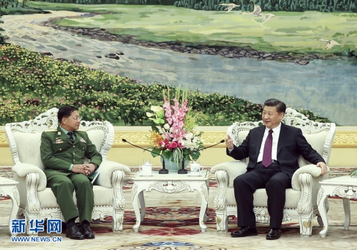 11月1日,国家主席、中央军委主席习近平在北京人民大会堂会见来访的缅甸国防军总司令敏昂莱。