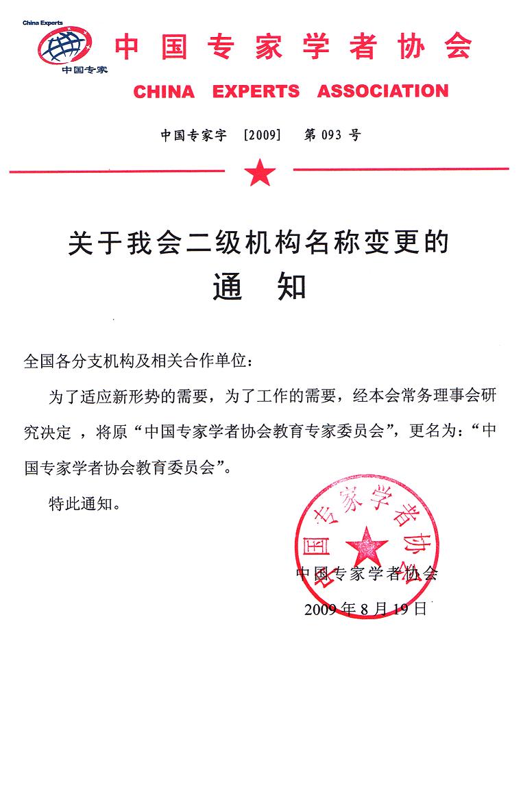 关于中国专家学者协会教育专家委员会人事