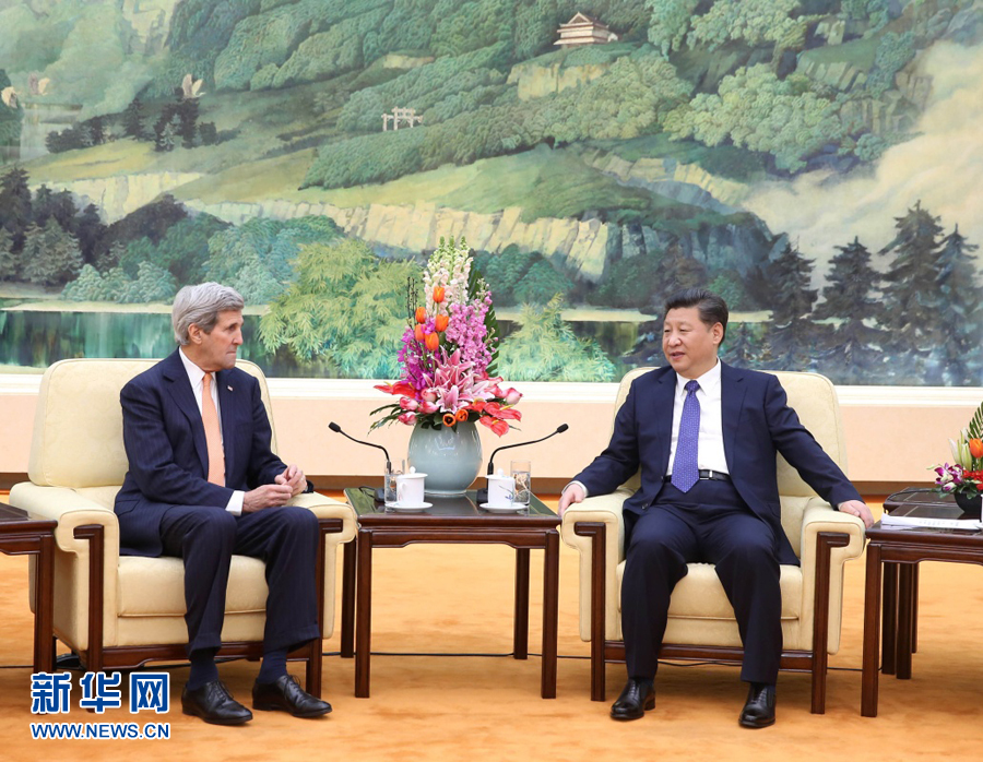 日,国家主席习近平在北京人民大会堂会见美国国务卿克里。