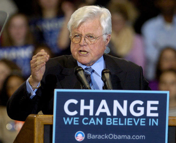 据美国媒体报道,美国联邦参议员、前总统约翰·肯尼迪之弟爱德华·肯尼迪于8月25日去世,享年77岁。这是2008年1月28日拍摄的爱德华·肯尼迪在华盛顿为奥巴马竞选造势的资料照片。新华社/路透