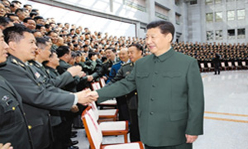 3月23日,中共中央总书记、国家主席、中央军委主席习近平视察国防大学并接见国防大学第六次党代表大会全体代表和师以上领导干部,代表党中央和中央军委向会议召开表示热烈祝贺。(新华社记者 李刚摄)