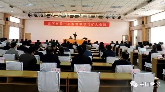 中国专家网讯:为贯彻落实中央“十三五”规划纲要,确保三河市“十三五”开好局,起好步,按照三河市委中心组学习计划安排,2016年4月11日上午十点到十二点,三河市委中心组集中学习扩大会议顺利召开。