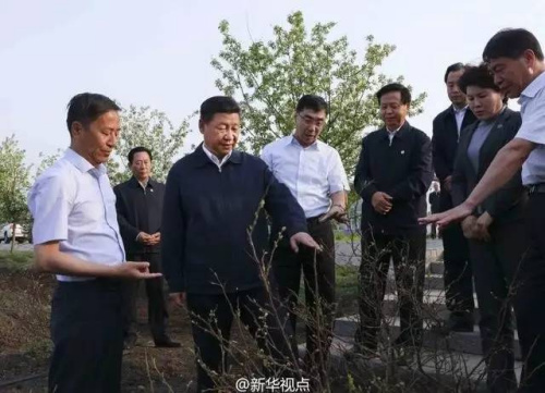 图为:2016年5月23日上午,习近平总书记到黑龙江省考察调研。习近平详细询问蓝莓生长周期、浇灌方式、经济效益等情况。