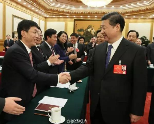 图为:2016年3月7日上午,中共中央总书记、国家主席、中央军委主席习近平来到十二届全国人大四次会议黑龙江代表团参加审议。