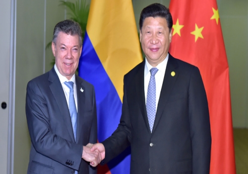 11月19日,国家主席习近平在利马会见哥伦比亚总统桑托斯。