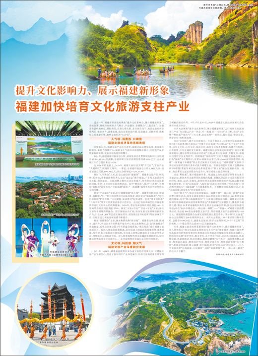 做足“资源整合”文章,激发集群成势“新动能”。福建着力串山海、联城乡、通内外,形成以5个世界遗产地为中心的文旅集聚区,打造“闽韵福游”世遗廊道,武夷山国家公园1号风景道全线贯通,“观山阅海”成为福建文旅亮丽名片。抢抓入境免签政策机遇,出台促进入境旅游高质量发展12条措施,发布10条入境旅游经典线路,举办海上丝绸之路国际文化旅游节等活动,持续做旺入境旅游市场。深入探索海峡两岸文旅融合发展新路径,加快建设世界闽南文化交流中心,一系列海峡两岸文旅行业合作持续推进。