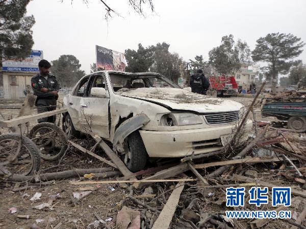 2月18日,阿富汗警方在阿富汗霍斯特省一处爆炸现场查看。阿富汗东部霍斯特省官员18日说,霍斯特省当天上午发生一起自杀式袭击事件,至少造成9人死亡,其中包括1名警察,超过30人受伤。新华社/路透