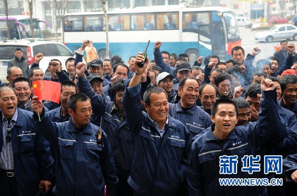 3月3日,从利比亚回国的185名山东日照建筑工人平安回到家乡,激动地高呼感谢祖国。当日,山东省日照市185名在利比亚工作的建筑工人返回家乡,受到亲人们的热烈欢迎。他们是乘坐我国政府派出的包机经马耳他回国的,于3日凌晨抵达上海,中午11时抵达日照市。 新华社发