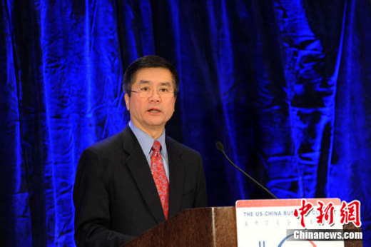 美国商务部长骆家辉13日在美中贸易全国委员会举办的午餐会上发表演讲时表示,美国欢迎中国经济快速发展,这不仅对中国自身有利,对美国和全球经济也有利。中新社发 吴庆才 摄