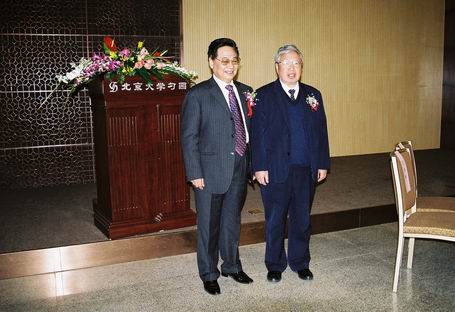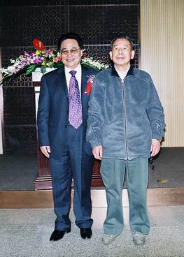 中国专家学者协会副会长李成勋(右)与中国专家学者协会副会长、三株药业董事长吴炳新(左)合影