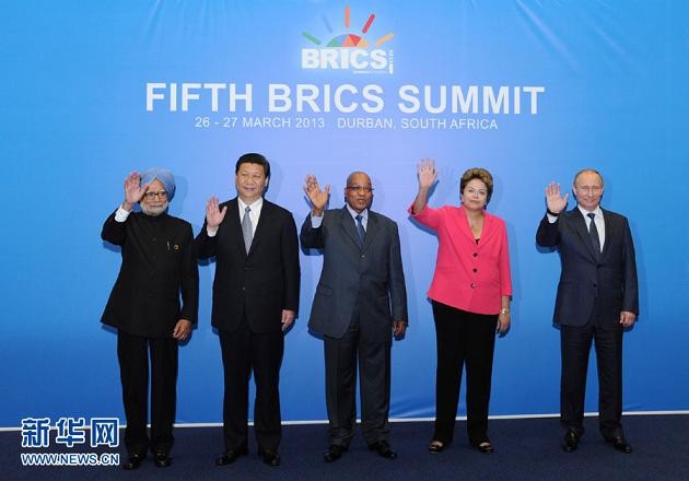 3月27日,国家主席习近平在南非德班出席金砖国家领导人第五次会晤。这是与会领导人集体合影。 新华社记者 谢环驰 摄
