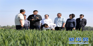 习近平十分关心夏粮形势。在列车上,他就向随行的农业部门负责人了解全国夏粮生产情况。到武清站一下列车,他直接来到南蔡村镇丁家瞿阝村的小麦大田,仔细察看小麦长势,向农民询问田间管理和预产情况,叮嘱当地干部加强农技服务,搞好田间管理,努力争取夏粮丰收。他强调,一个国家只有立足粮食基本自给,才能掌握粮食安全主动权,进而才能掌握经济社会发展这个大局。他希望天津加快发展现代都市型农业,努力提高粮食自给能力,为确保国家粮食安全多作贡献。