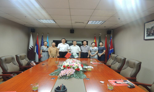 小康发展促进中心主任李德胜(左三)、协会高级顾问艾云航(中)协会常务副会长、法人代表安卫华(右三)、协会副秘书长吕芙蓉(左一)、协会副会长张上塘(左二)、小康发展促进中心副主任魏靖丽(右二)、协会常务副会长助理王春一(右一)。