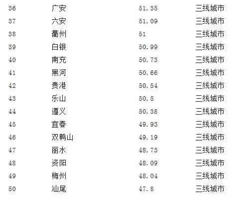 某业内人士对记者分析,风险排在前50位的基本上都是三线城市,有个别二线城市。在发展前景前50位的城市当中,以一二线城市为主,三线城市的数量比较少,即使有,也是东部较发达的一些地级市。