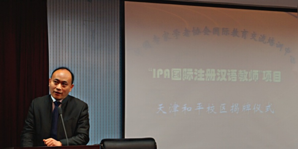 中国专家学者协会党总支部书记、常务副会长安卫华发表了精彩讲话,他说,今天非常高兴中国专家学者协会国际教育交流培训中心“IPA国际注册汉语教师”项目落户天津和平校区,又多一个加强中外文化交流,进而为汉语和中国文化的国际推广事业的平台。我们承担任着传承中华优秀文化,推广国际汉语教学、培训国际汉语教师的使命和责任。他强调我们的培训机构要加强民族责任感,一定要尽心尽力培训优质人才,加强培训的同时更要对我们培训出来的学员后期就业负责,加强出国就业跟踪等服务,使他们到了国外工作能够更踏实放心。